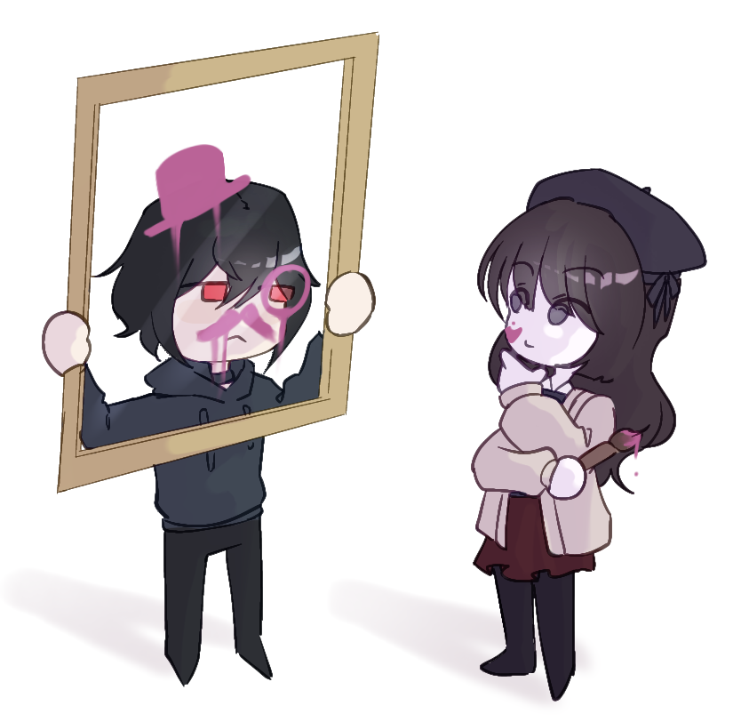 This drawing is based on the painting "Ivan the Terrible and His Son Ivan" by the russian painter Ilya Repin, as soon as I see the word "tragedy" this painting pops into my mind (along with shakespear but i dont remember the shit he wrote) and I felt like it fit Shadow Milk so much, the grief of realizing you lost something precious to you (in this case his old self and everything that came along with it) due to an irrational decision made in anger or sadness, feels like something he'd grabble with while in the process of getting corrupted and embracing his new self fully.