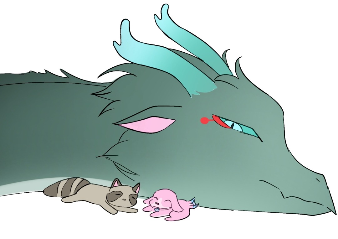 I don't draw animals often, let alone dragons, but I liked the idea of drawing them as different animals that reminded me of them! TB and Dan Heng are obvious, But with March I had to take some creative libreties, obviously her energy is similar of that of an excited puppy, but she also seems to be able to talk to dogs? She explains it as cute girls having this ability, so I assume Stelle just isn't cute enough...or a girl