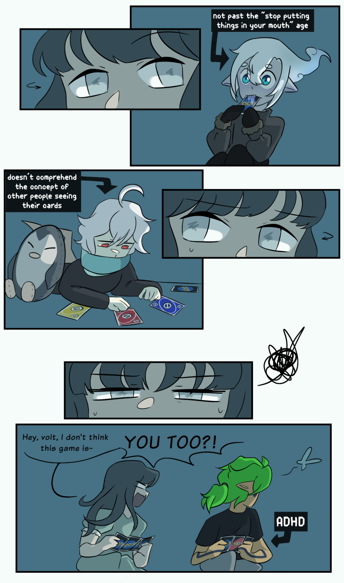 If you ever underestimate my procrastination skills, know that I was actually planning on drawing them on the very first day of artfight. I also had ALOT of ideas for these two that I didn't end up going with out of fear of mischaracterization, including a 4-5 paneled comic. Maybe next year, though.