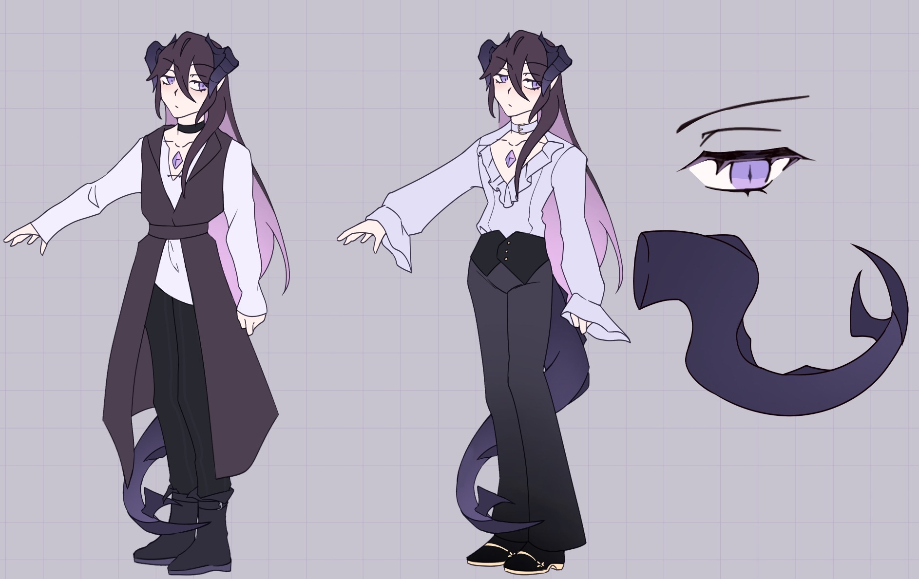 Practice for drawing outfits based on description only, using the main character of an amazing Obey Me Fanfiction: IK from Journey To The Attic!