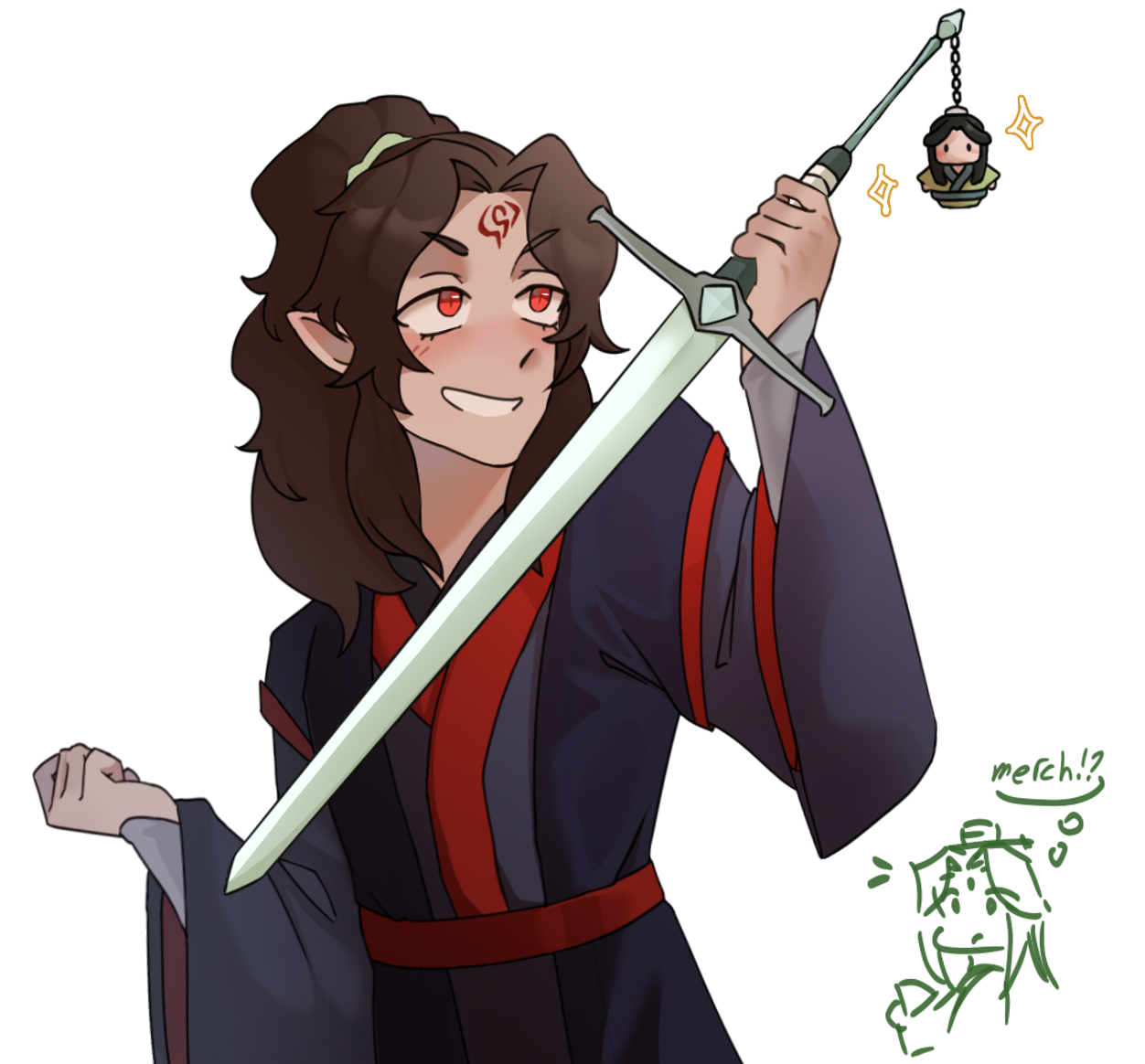 I made a point to give Binghe Zheng Yang instead of Xin Mo, because Post-canon Binghe being able to use it without getting corrupted or sealing its power with tailsmen is cool and all, but I like the idea of Shen Qingqiu returning the sword from the swordmount and Binghe getting to use the sword that was meant for him